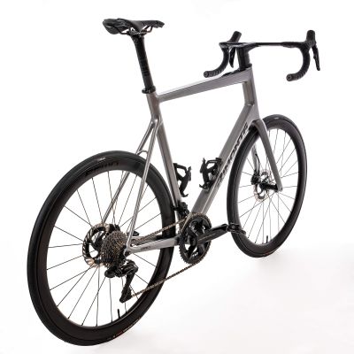 Handgemaakt frame, voorvork, CeramicSpeed SLT balhoofdstel (lifetime warranty), zadelpenklem, voorderailleurklem en steekassen (12 mm). Tot 66 cm CT.